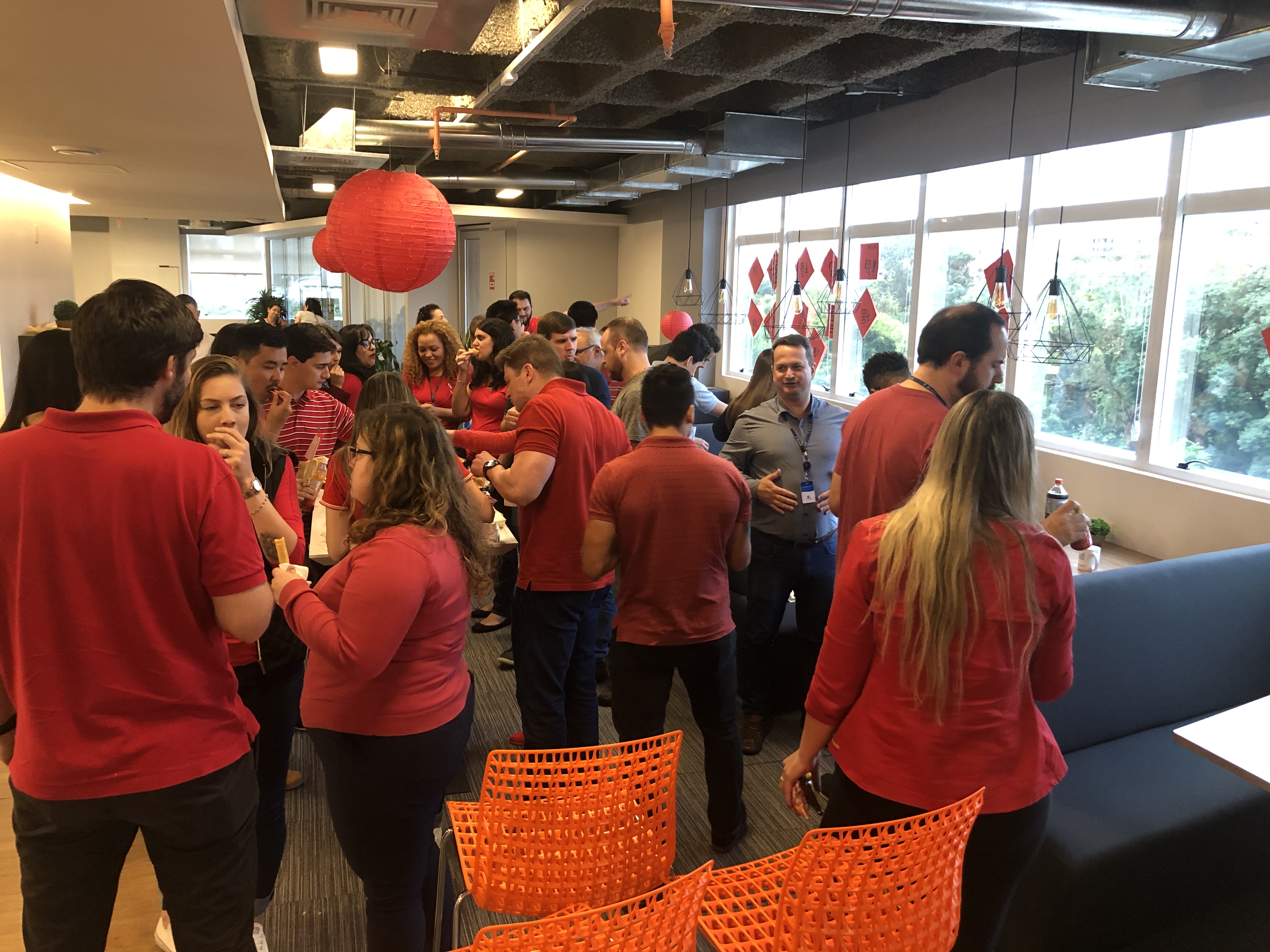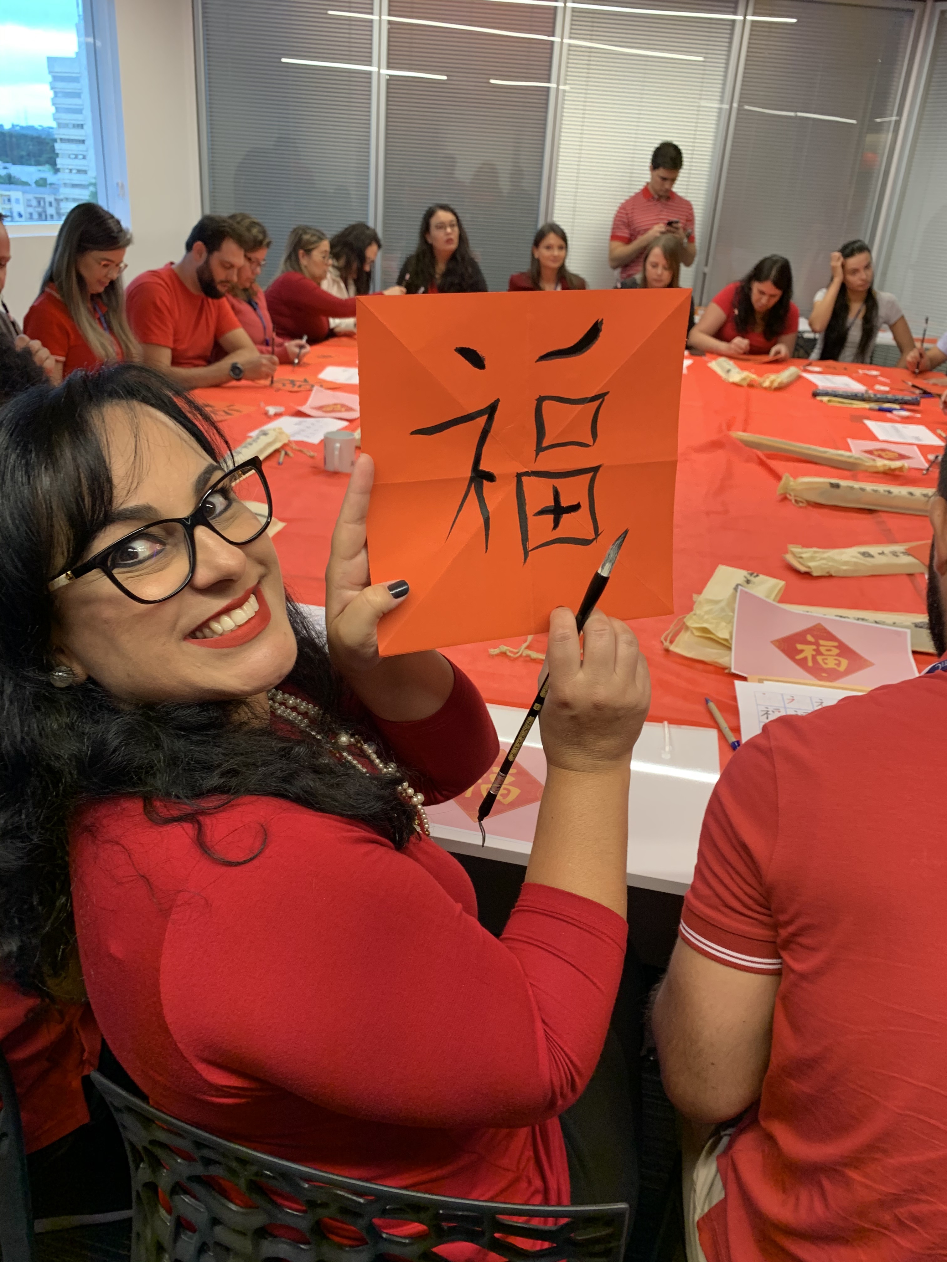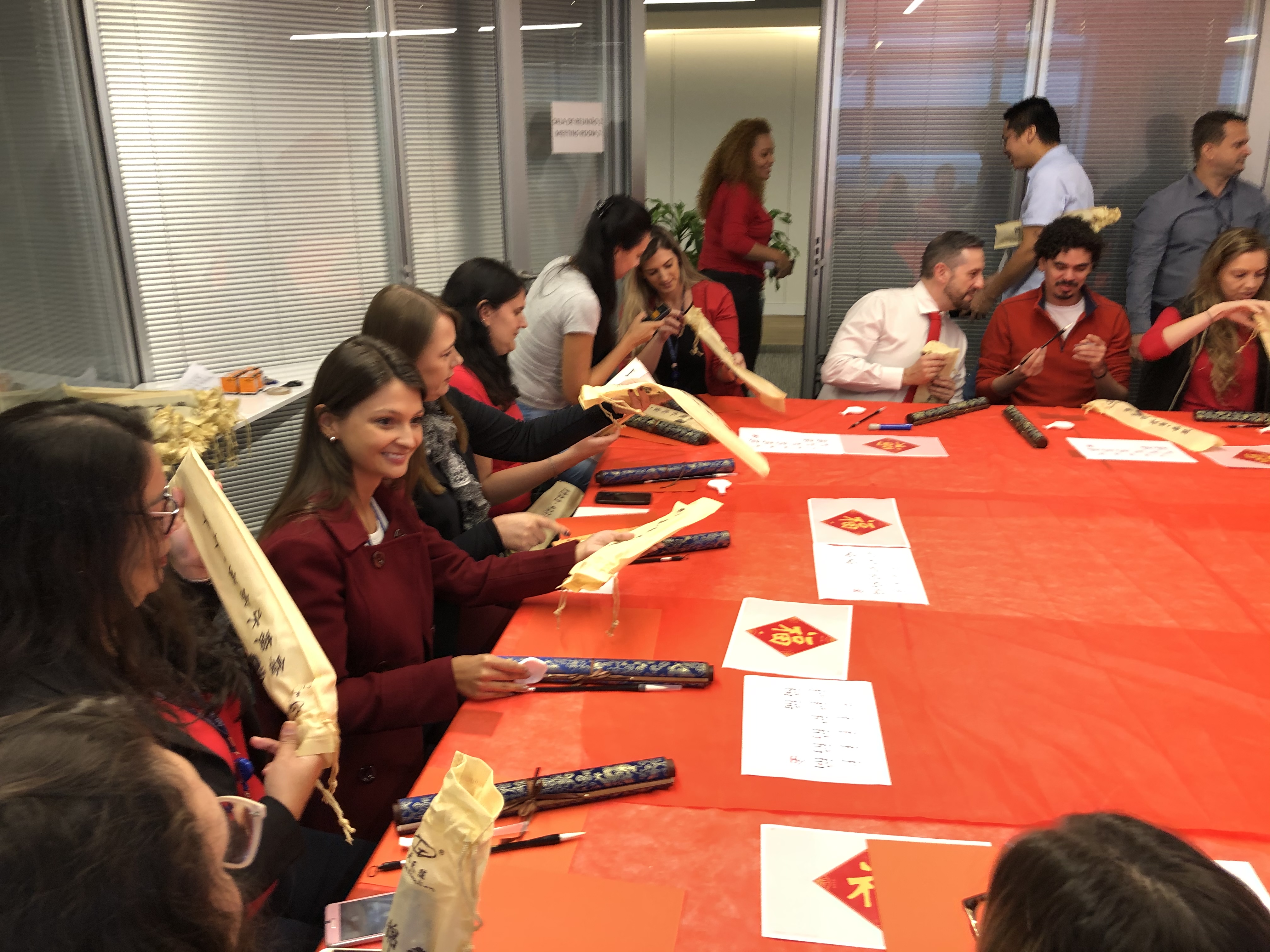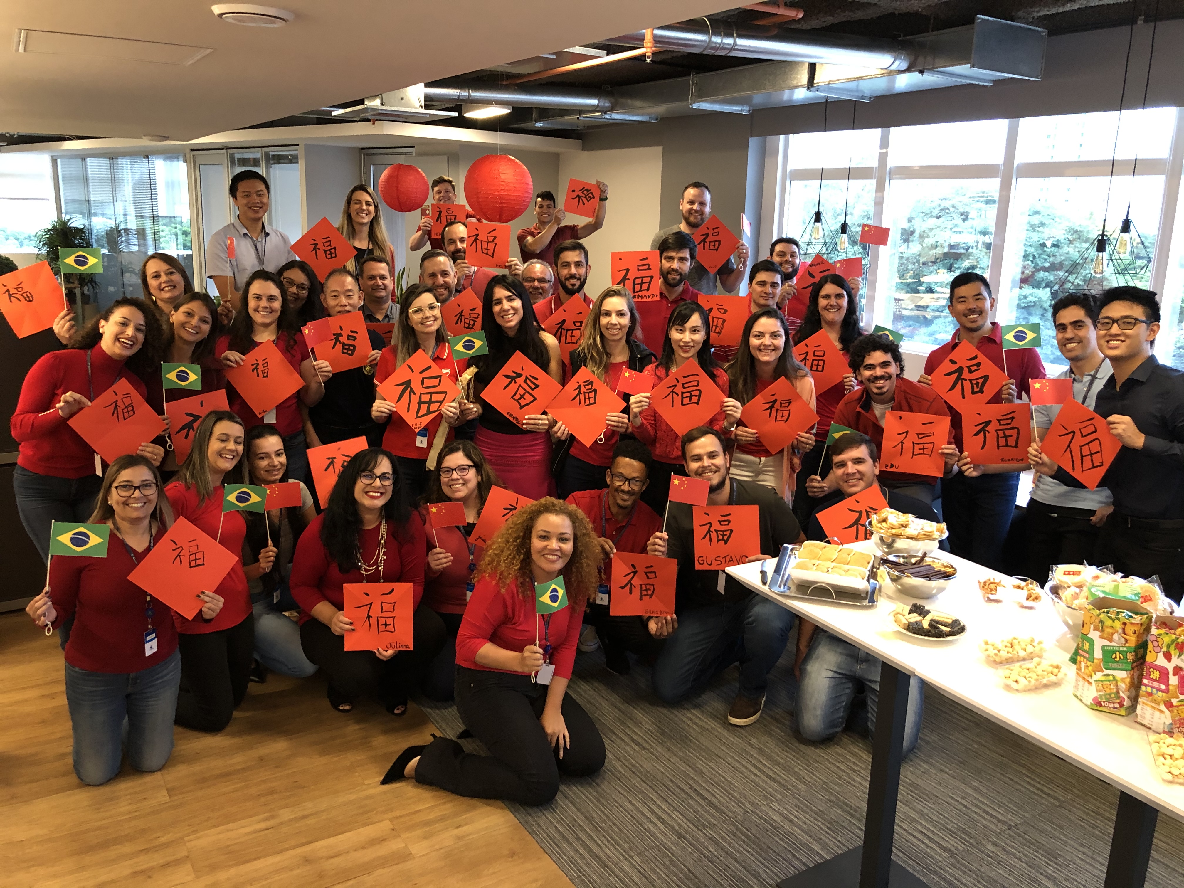 2020年1月17日,巴西公司組織“新春送!被顒(dòng)。圖為員工們展示作品合影